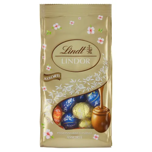 Lindt Lindor Zmes mliečnej, horkej a bielej čokolády s jemnou tekutou náplňou