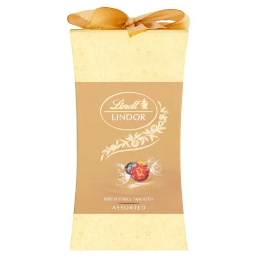 LINDOR pralinky zlatá zmes vo vianočnom balení – ideálne balenie pre tých z nás, ktorí sa nedokážu uspokojiť s jedinou príchuťou, ale milujú pestrosť chutí. Doprajte si čokoládové pralinky LINDOR z lahodnej mliečnej, bielej a horkej čokolády Lindt s neodolateľne jemnou čokoládovou náplňou. Tieto pralinky od najlepších Majstrov Čokolády Lindt sú perfektným darčekom pre každého milovníka čokolády – vrátane vás samotných.