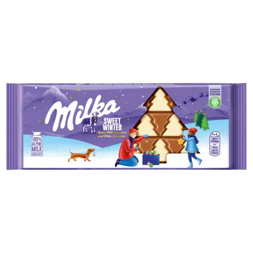 Cukor, Kakaové maslo, Sušené odtučnené mlieko, Kakaová hmota, Sušená srvátka (z mlieka), Mliečny tuk, Emulgátor sójový lecitín, Lieskovooriešková pasta, Arómy, V mliečnej čokoláde z alpského mlieka kakaová sušina najmenej 30 %
