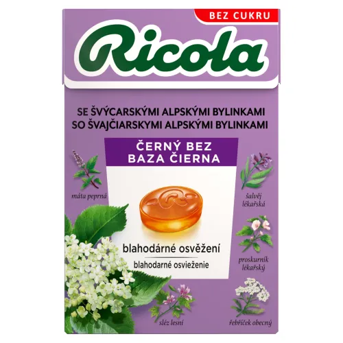 Zloženie: Sladidlo (izomalt), Kyselina kyselina jablčná, Výťažky (0,5 %) z kvetu bazy čiernej a zo zmesi 13 Riciola bylín, Koncentrovaná citrónová šťava, Sladidlo: glykozidy steviolu, Prírodné arómy, Koncentrát (sladké zemiaky, mrkva), Mentol, *Glykozidy steviolu sú získané z rastliny stévia