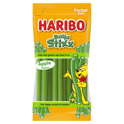 Zloženie: Cukor, Pšeničná múka, Glukózo-fruktózový sirup, Pšeničný škrob, Voda, Palmový tuk, Emulgátor: mono- a diglyceridy mastných kyselín, estery mono- a diglyceridov mastných kyselín s kyselinou citrónovou, Kyselina kyselina citrónová , Jedlá želatína, Aroma, Farbivá: kurkumín, meďnaté komplexy chlorofylínov, Leštiace látky: biely a žltý včelí vosk, karnaubský vosk