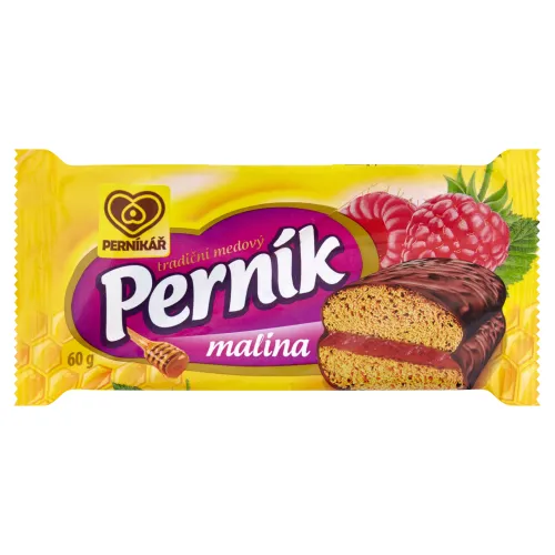 Zloženie: Pšeničná múka, Náplň 18 % [ovocný pretlak (jablko), cukor, glukózový sirup, ovocný pretlak (aronia), ovocný pretlak (malina) (5 %), modifikovaný škrob E1422, kyselina (kyselina citrónová), želírujúca látka E440(i), aróma, regulátor kyslosti E333, pitná voda], Poleva 16 % [cukor, plne hydrogenovaný tuk z palmových jadier, kakaový prášok so zníženým množstvom tuku, emulgátor (sójový lecitín), aróma], Fruktózovo-glukózový sirup , Vajcia, Pekársky med 1 % , Kypriace látky (uhličitany amónne, uhličitany sodné), Pitná voda, Perníkové korenie