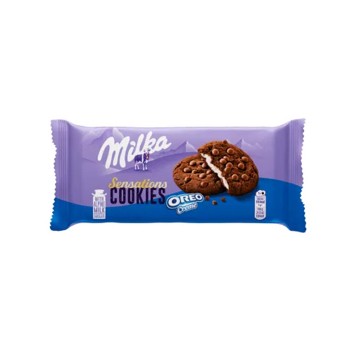 Milka Sensations Cookies OREO mäkká sušienka plná jemnej mliečnej čokolády Milka, ktorá sa rozplýva v ústach