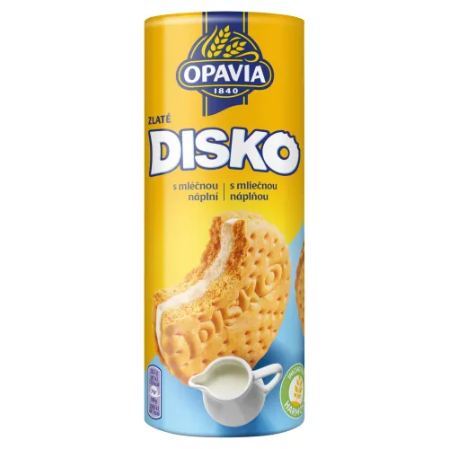 › Sladkosti, dezerty a cukrovinky › Sušienky, keksíky a oblátky › Plnené keksíky › Opavia Disko sušienky s mliečnou náplňou