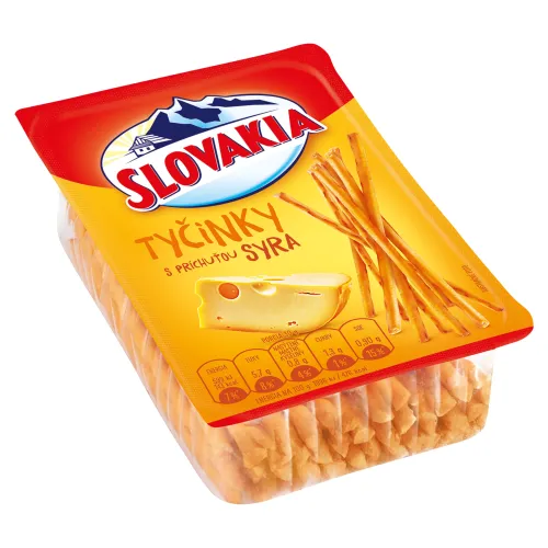 Pšeničná múka 68%, Repkový olej, Sušený syr (4%), Sušená srvátka, Jedlá soľ, Sušený cmar, Cukor, Prírodná aróma, Kvasnicový extrakt, Kypriaca látka (uhličitany amónne), Koreniny, Farbivo (extrakt z papriky)