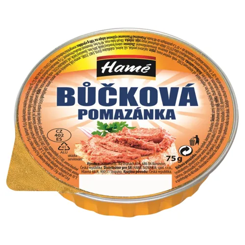 Voda, Údený bravčový bôčik (30 %) (bravčový bôčik, jedlá soľ, konzervačná látka: dusitan sodný), Bravčové mäso (20 %), Sušené vajcia, Rajčinový pretlak, Koreniaci prípravok (jedlá soľ, koreniny, zahusťovadlo E407a, dextróza, kvasničný extrakt, dymová aróma)