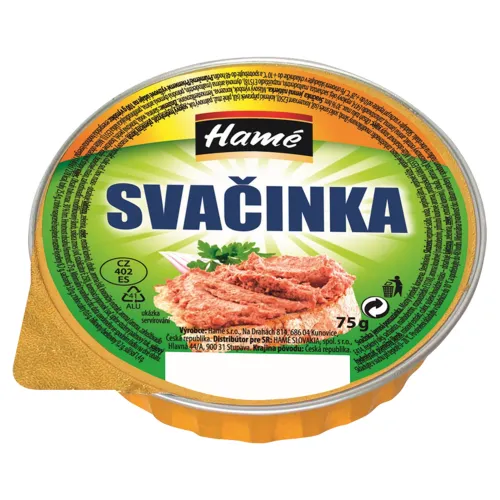 Zloženie: Voda, Bravčový tuk, Bravčové kože, Bravčová pečeň, Bravčové mäso (8 %), Modifikovaný škrob, Soliaca zmes (jedlá soľ, konzervačná látka: dusitan sodný), Stabilizátor (chlorid draselný, karagénan, karobová guma), Koreniaci prípravok (jedlá soľ, sójový hydrolyzát, palmový olej, pšeničný škrob), Cukor, Hovädzí extrakt (jedlá soľ, hovädzí extrakt, repkový olej), Sušená zelenina (cibuľa, zeler, petržlenová vňať), Sušené hovädzie mäso (8 %) (hovädzie mäso, pšeničná vláknina bezgluténová, rozmarínový extrakt), Extrakty korenín (obsahuje pšeničnú múku), Sušená cibuľa, Bravčová bielkovina, Aróma (jedlá soľ, kvasnicový extrakt, aróma, dymová aróma)